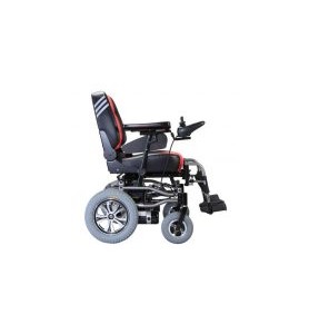 Ηλεκτρική καρέκλα, ιδανική για εσωτερικούς χώρους, χάρη στην δυνατότητα περιστροφής της 360ο. Περιστρεφόµενο κάθισµα µε αναπαυτική πλάτη, ρυθµιζόµενης κλίσης και στήριγµα κεφαλής. Πλαϊνά τύπου "Flip Up". Αναδιπλούµενο υποπόδιο. Το χειριστήριο µπορεί να τοποθετηθεί και στις δύο πλευρές. Εµπρόσθιoι τροχοί µή ανατροπής "Αnti Tip".